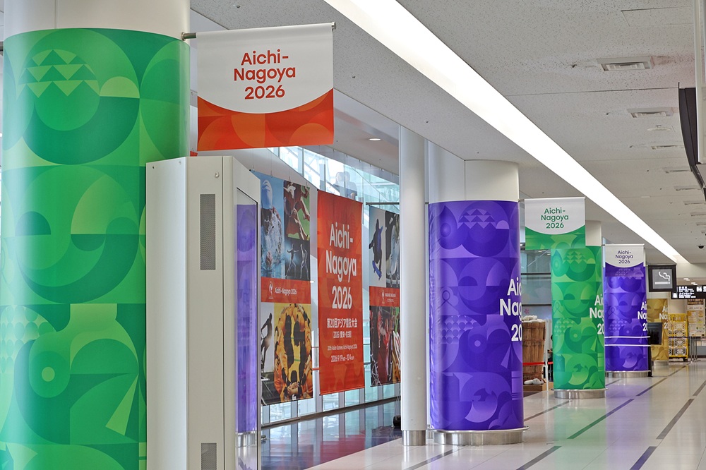 第1ターミナル2階国際線到着ロビーで館内装飾を展開。世界中から訪れる人たちが、中部地域で最初に足を踏み入れる空港から機運醸成・情報発信を行う。なお、館内装飾は今後も展開場所を増やしていく予定となっている。