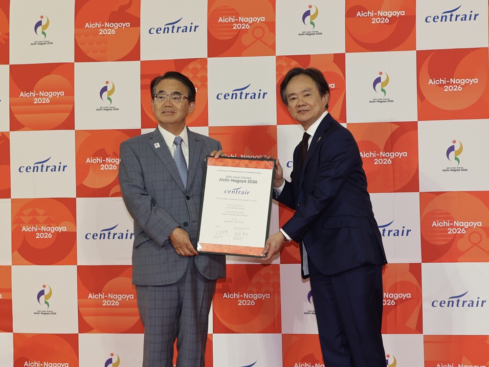 中部国際空港株式会社は、公益財団法人愛知・名古屋アジア・アジアパラ競技大会組織委員会と、第20回アジア競技大会(2026/愛知・名古屋)および第5回アジアパラ競技大会(2026/愛知・名古屋)における